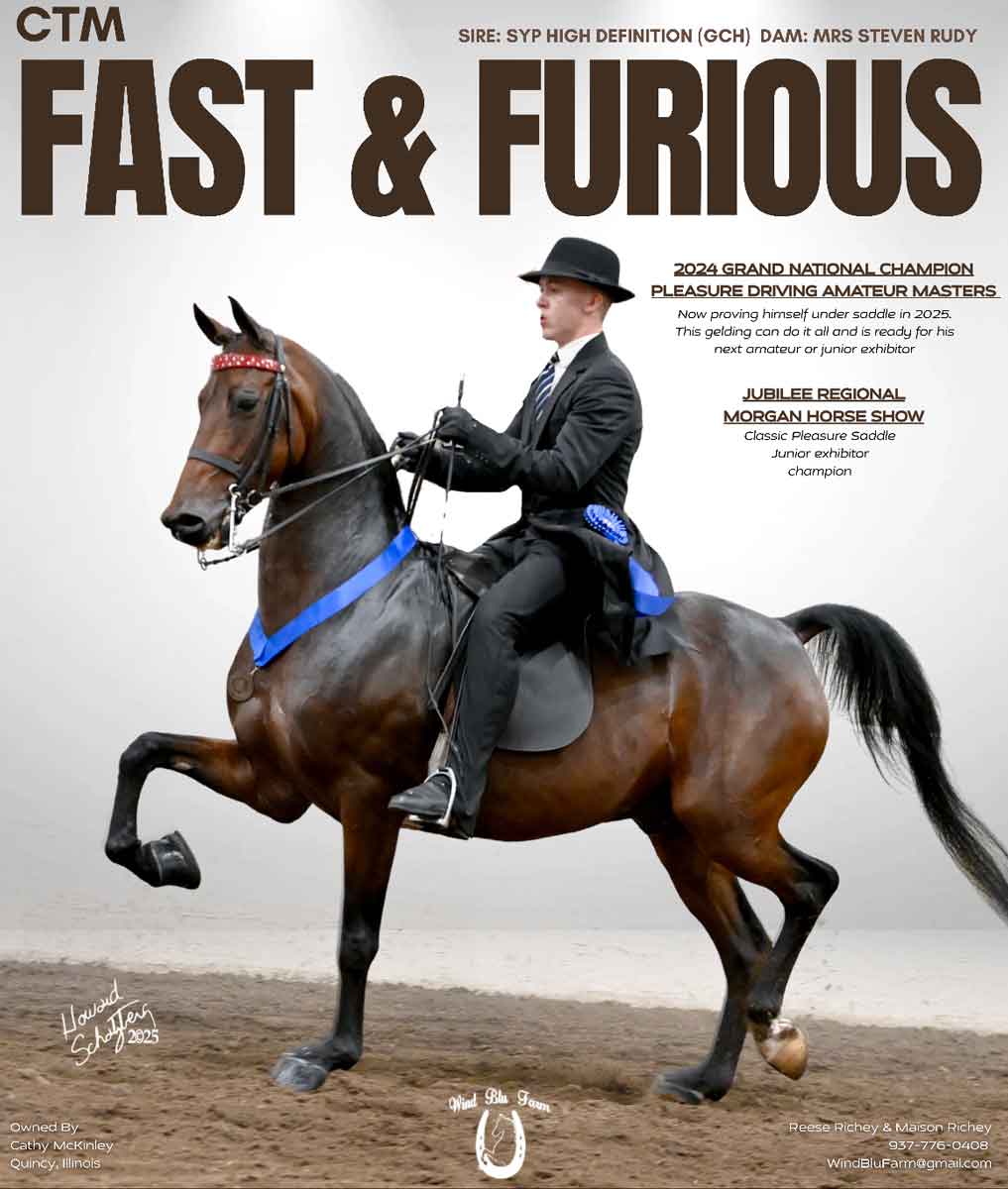 Last year, he was the Grand National Amateur Masters Pleasure Driving Champion, and he was also back to back Reserve World Champion in the 3YO World Futurity English Pleasure/Pleasure Driving. This year, he chalked up wins and/or tricolors at the Jubilee Regional, Indiana Spring Classic, Tri-State All Morgan, and the Gold Cup Regional. He is expressive, eye-catching, and is always ready to show. Cal is ready to shine with his next person, and his best years are still ahead. Be first in line for a test ride or drive in Oklahoma City with this special guy! |