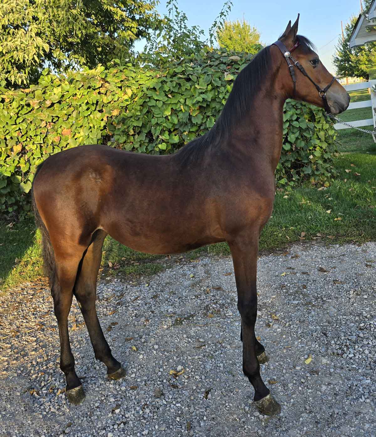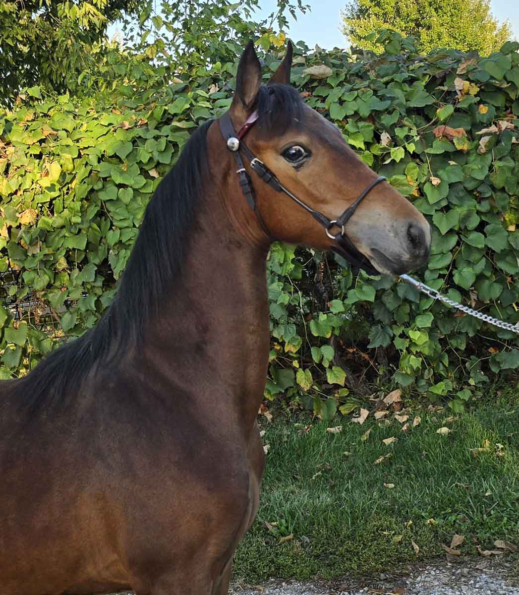 | The beautiful, long-necked 2025 filly would not be for sale, if not for her stablemate requiring expensive surgery.