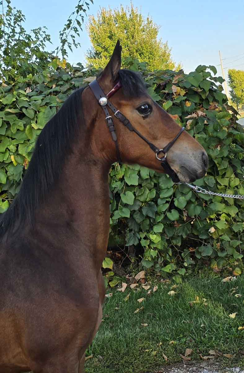 Kara is wonderfully bred, with some of the best old blood going back to Kingstone, Tedwin Topic, and Van Lu Starbuck on the dam's side, and her sire bringing recent World Champions to the mix with Dragonsmeade Axios, Stonecroft Trilogy, and Centerpiece. Take note of her teacup muzzle, tippy ears, long legs, and excellent withers, with a naturally high set tail—this one is going to grow up to be a stunning mare! |
