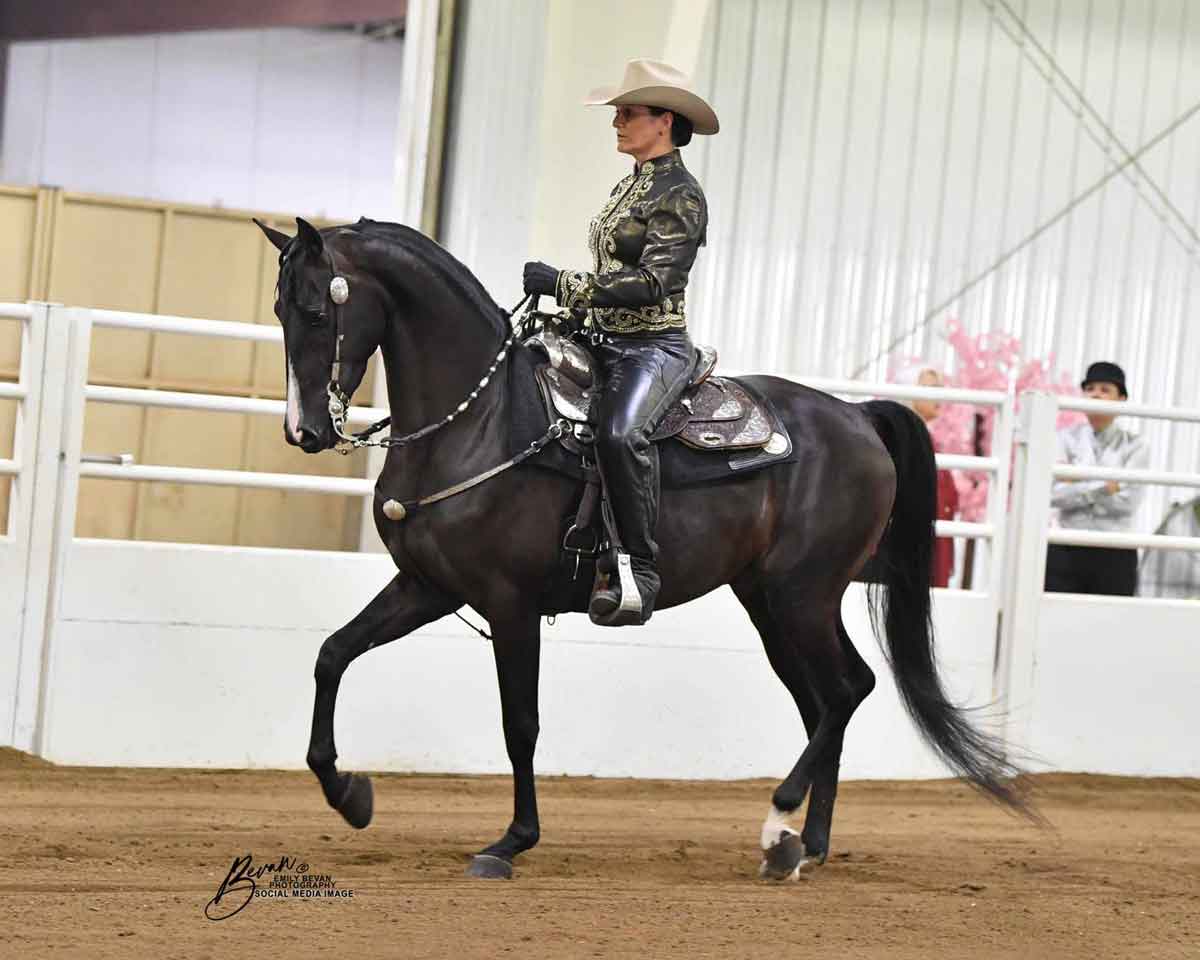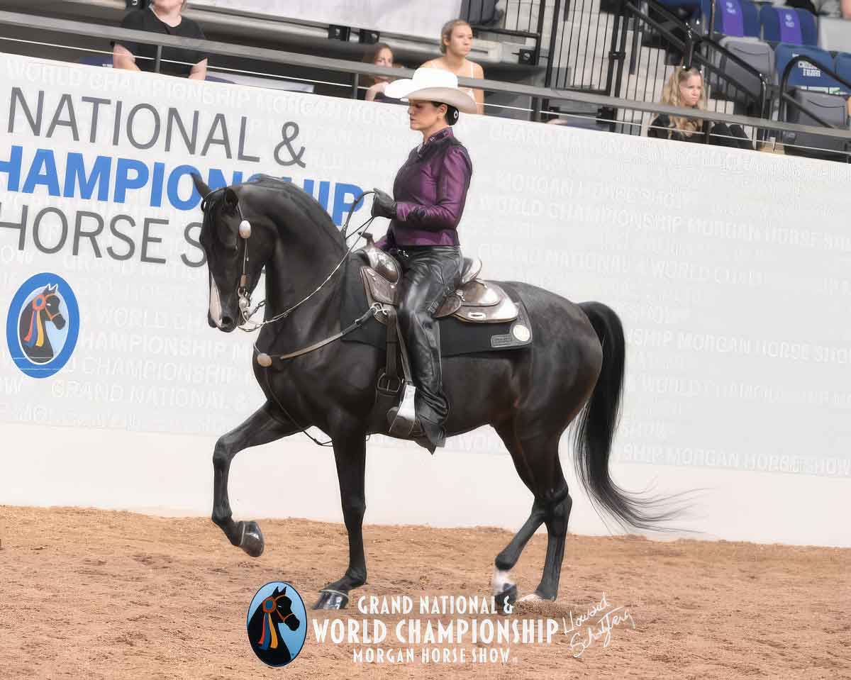 | "Brady" is a wonderful young western star on the rise. He was solid in his first season in 2025, and earned Top 3 and Top 4 ribbons in a strong field of 3YO Western Pleasure horses at the recent Grand National & World Championship Morgan Horse Show. He was also the Junior/Limit Horse Western Pleasure Champion at the North Star Show, as well as Reserve Junior Horse Western Pleasure Champion at the very competitive Jubilee Regional.