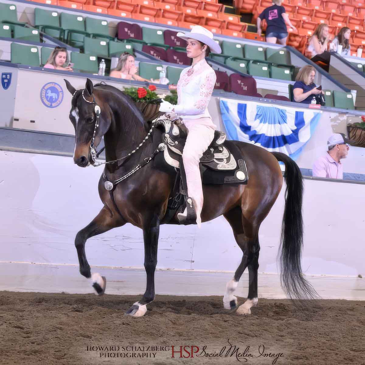 Safe enough for a walk-trot rider, and game enough for a WTC, youth, or masters rider, she's been started on equitation patterns and I think with a winter of work will have her ready to take a rider to the winner's circle! This past winter, she was worked as a western horse, and while she needs a little finishing, she neck reins well and is gorgeous in silver! She is versatile and ready to team up with her next partner. Down the line, her impressive pedigree should insure her success as a producer. By the many time World Champion GRAYCLIFF TONY GCH, out of an Astronomicallee daughter, she'll be a super addition to anyone's breeding program. This pretty girl just returned from the 2025 Morgan Grand National with a well earned fourth place in a strong class of Grand National Hunter Pleasure Youth Mares! |