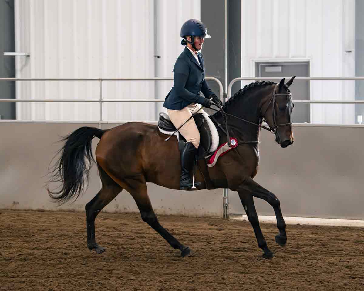 Smart and pretty, this well bred gelding would do well with an intermediate rider with a coach to develop further. Currently green and very willing to learn, he trailers well, full body clips, bathes, and isn’t reactive to all daily activities like tying, sprays or other stimuli. Correct, with great feet and clean legs, he has just one minor blemish. He's been trailered out to day and overnight shows, and will continue to do so until sold. He has lots of life skills! Show horse blood on the sire's side means "Rhy" comes out ready to work, and can be anxious and green. However, he is reasonable and is keen to be worked with. He has a large, marching walk when working over his back, and is now starting to learn how to stretch at the trot. He learned canter leads quickly and will develop strength with time, we're not rushing the training process on this horse. He hacks out alone and as a pair. Untested in a group setting. He’s been slow maturing, and in the right hands he'll make a lovely reliable mount. Up to date on vaccines, teeth and farrier, and he's handled daily. He prefers to live out with company, and feels most comfortable staying with other horses – not alone. Turns in during poor weather. Closer to top of the herd in our small herd dynamic. Raised and trained on a working beef farm with vast exposure to moving machinery and many distractions, this gelding is rational and responsive, and is just waiting to soak up all the attention of a new owner. |